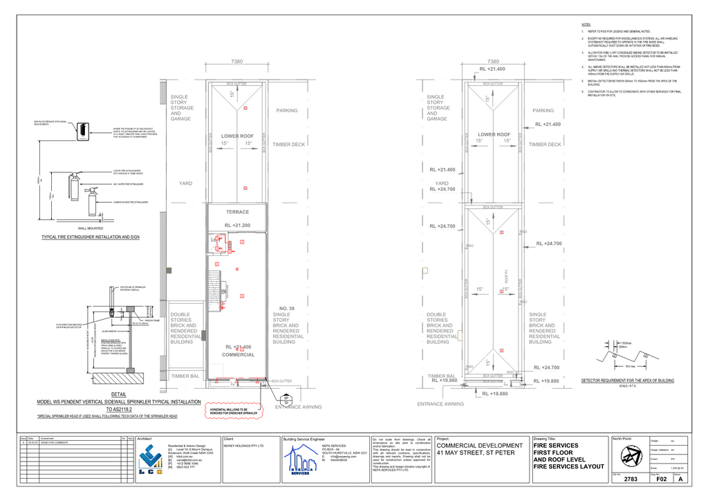 Fire services drawings illustrate how fire systems will be installed in a building. These drawings are typically required for certifier review and contractor installation.